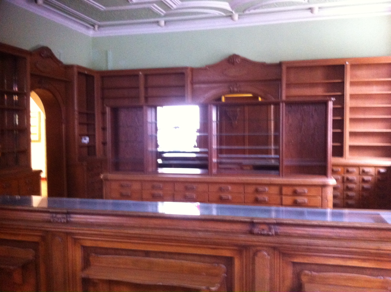 Der erste Raum erwartet uns mit gefühlten tausend Schubläden in jeder Ecke bis unter die Decke, die alten Schränken haben einmal viele unterschiedliche Pillen und Pülverchen beherbergt. Eine riesige Theke mit ebenfalls hunderten von Schubläden, teilt die Mitte des Verkaufsraumes der ehemaligen Apotheke, so etwas habe ich noch nie gesehen. Raum für Raum, jeder Winkel wurde zum Lagern von Medikamenten genutzt, das ist wirklich einmal mit viel Liebe und Leidenschaft eingerichtet worden.