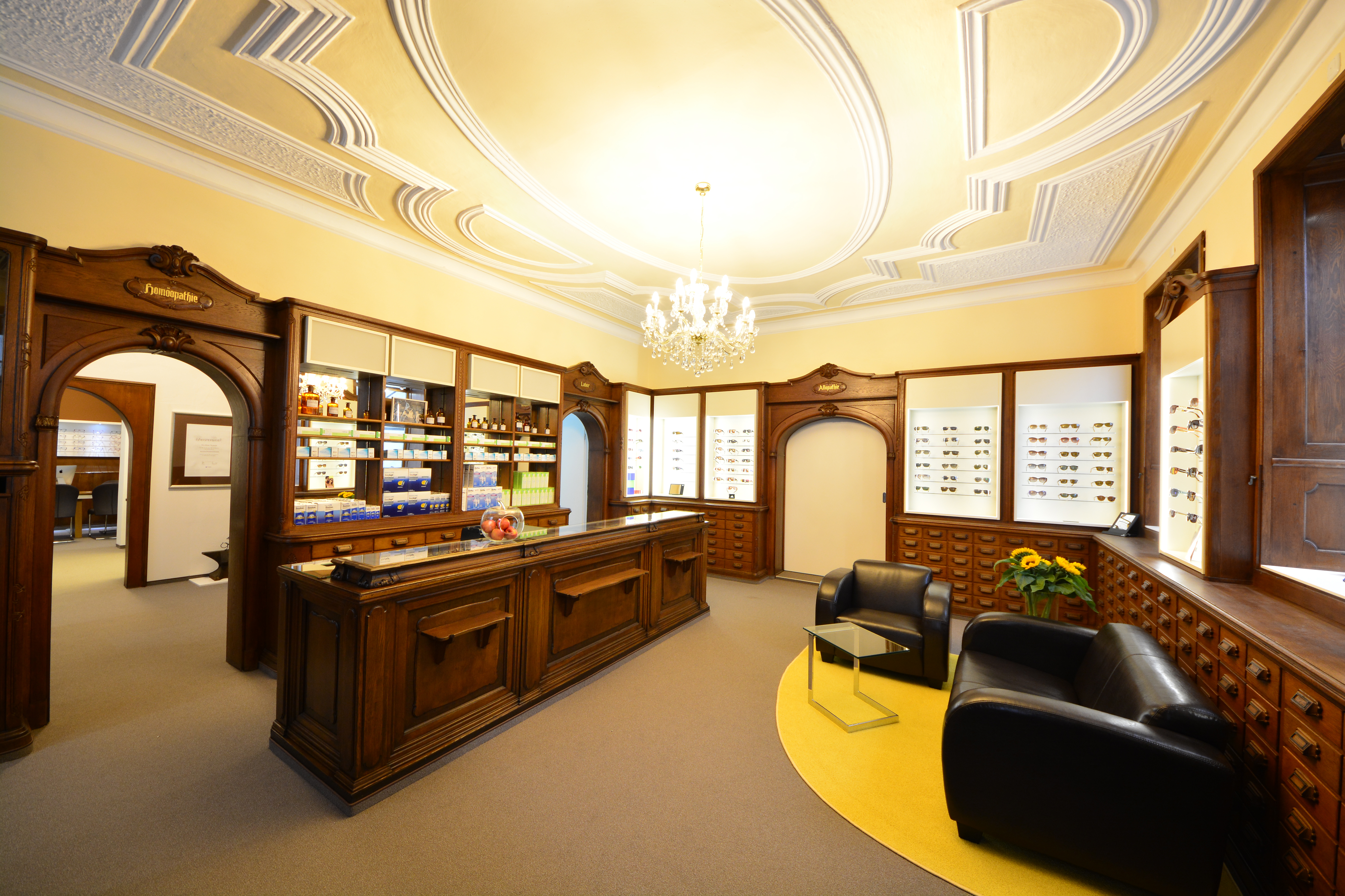 Und das lange Suchen hat sich, wie ich finde, gelohnt. Die Optikmeisterei ist mit den vielen kleinen Räumen für ein Optikergeschäft ganz untypisch aufgebaut,