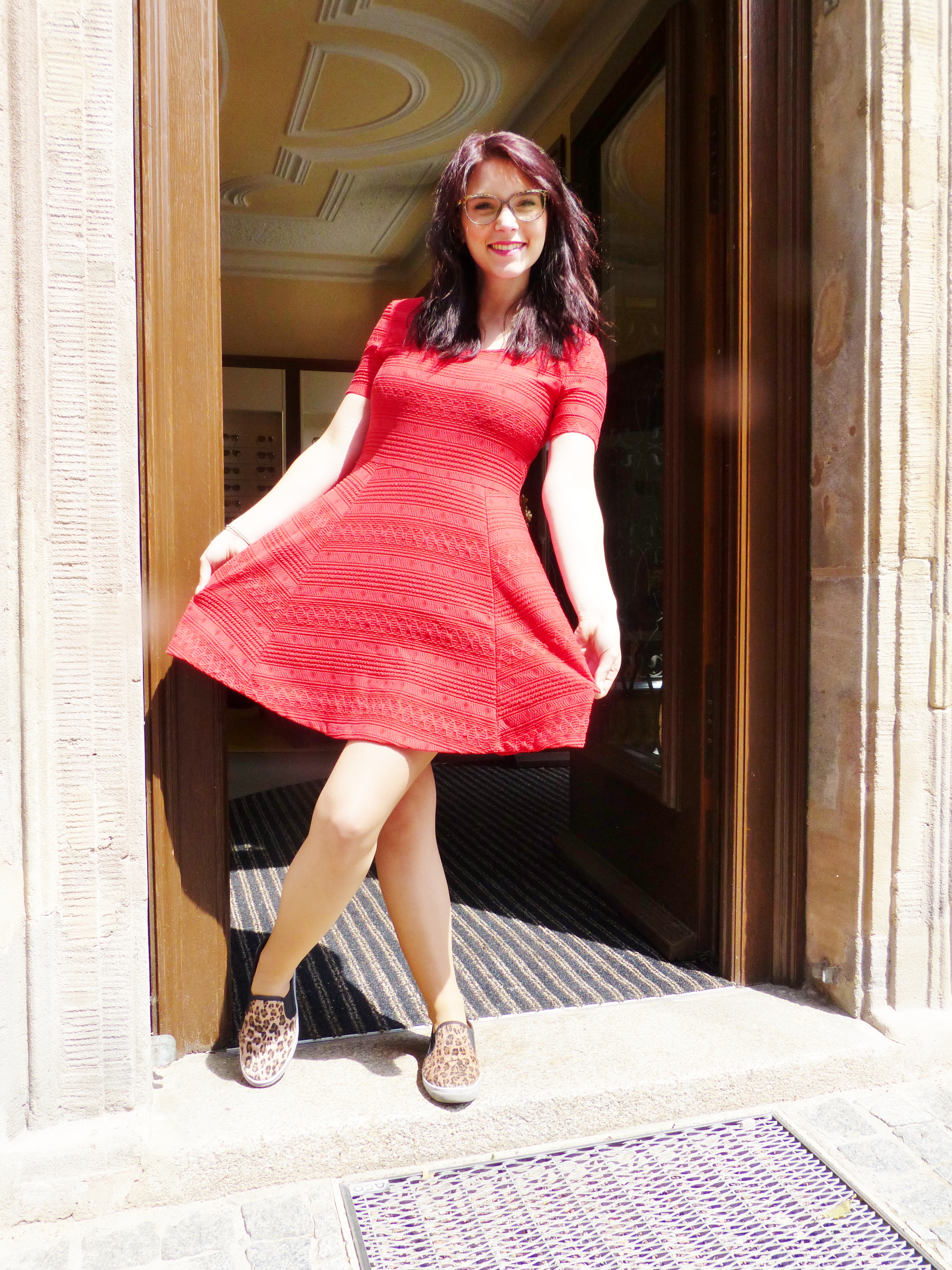 Nachdem das Wetter sich heute noch einmal von seiner besten Seite zeigt habe ich mich für ein kräftiges rotes Kleid entschieden:-) Am liebsten trage ich dazu meine Italia Independent Brille mit Leoparden und Tiger Muster. Passend zur Brille habe ich meine Ohrringe, die ich bei Zweiraum in Erlangen gefunden habe und meine Schuhe die ich in Italien ergattern konnte kombiniert.