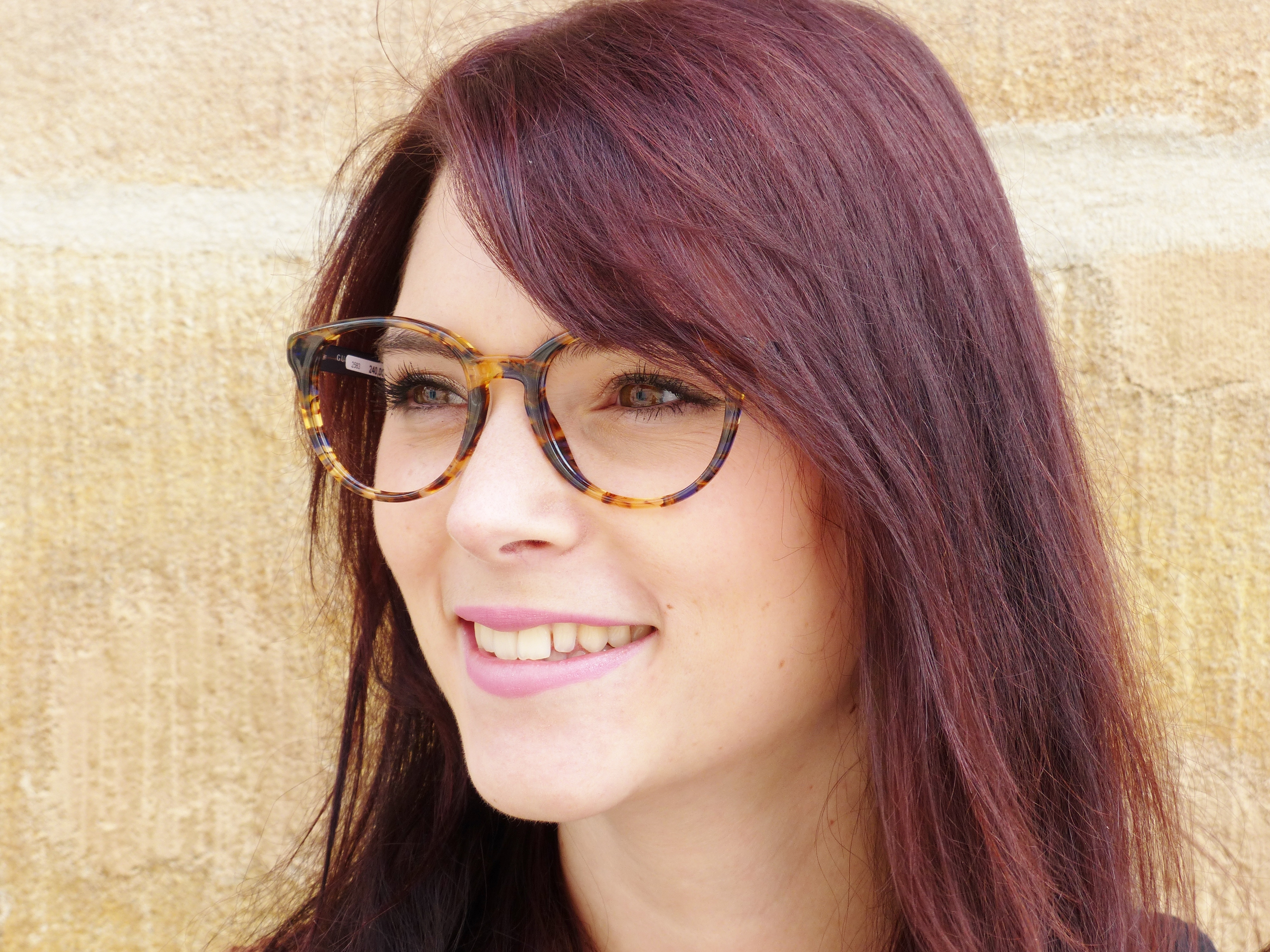 Da die Brille in verschiedenen braun und blau Tönen schimmert, habe ich mich für ein farblich schlichtes Outfit entschieden.