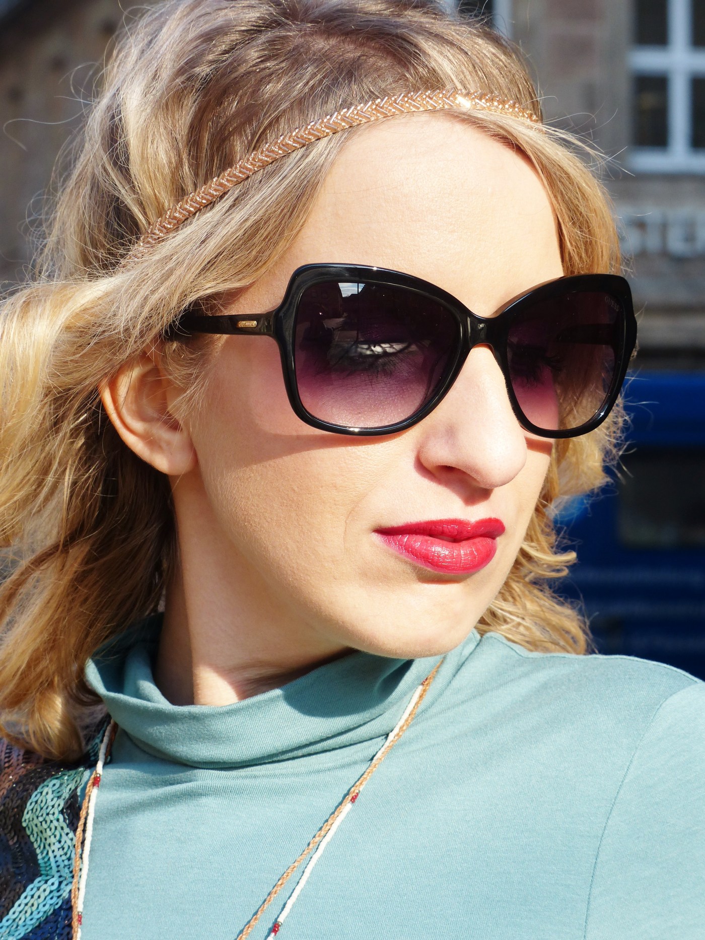 Unseren ersten Liebling trägt Jelena. Eine Sonnenbrille mit Großstadtflair 😉