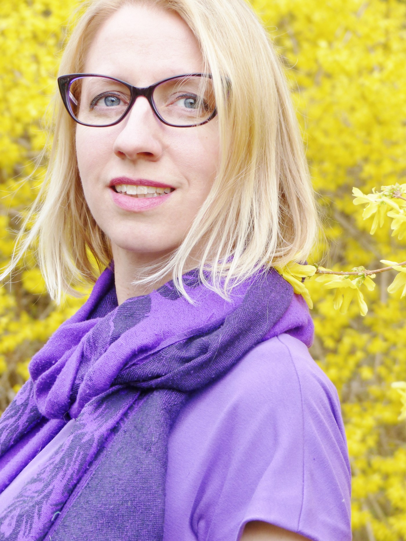 Passend zu ihrem lilafarbenen Kleid hat sie sich die Brillen in der genau dazugehörenden Farbe ausgesucht. Das Material spielt zwischen einem dunklen Violett bis hin zu einem leuchtenden Fliederton.
