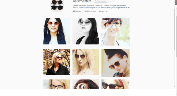 Damit Ihr jetzt schneller über unsere neusten Trends bescheid wisst und sie euch direkt anschauen könnt, startet die Optikmeisterei jetzt auf Instagram. Dort zeigen wir euch ab jetzt regelmäßig unsere Highlights - lasst euch inspirieren und überraschen. https://www.instagram.com/optikmeisterei/ Wir freuen uns über euren Besuch:-) Wenn auch ihr nichts verpassen wollt über die neusten Trends in der... Continue Reading →